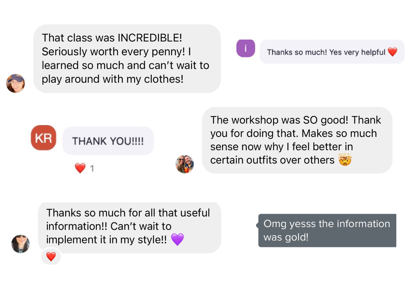 - finding clothing in your closet that feels like new because now you know how to style it in a complimentary way